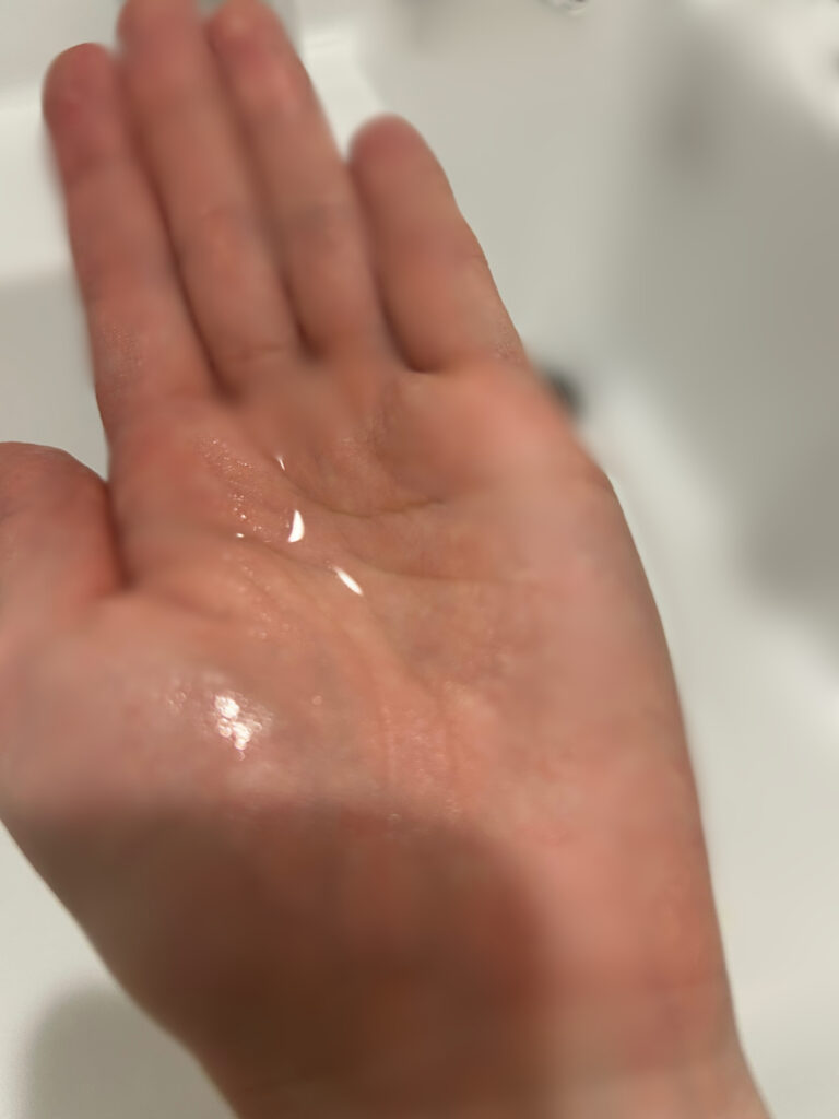 見た目は無色透明。触った感じもシャバシャバとしています。見た目は水に見えますが…。