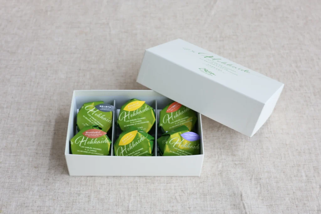 6個入(2,808円):ダブルチーズ2個/アカシア蜂蜜とりんご/ハスカップとホワイトチョコレート/生チョコとチョコチップ/抹茶と黒千石各1個