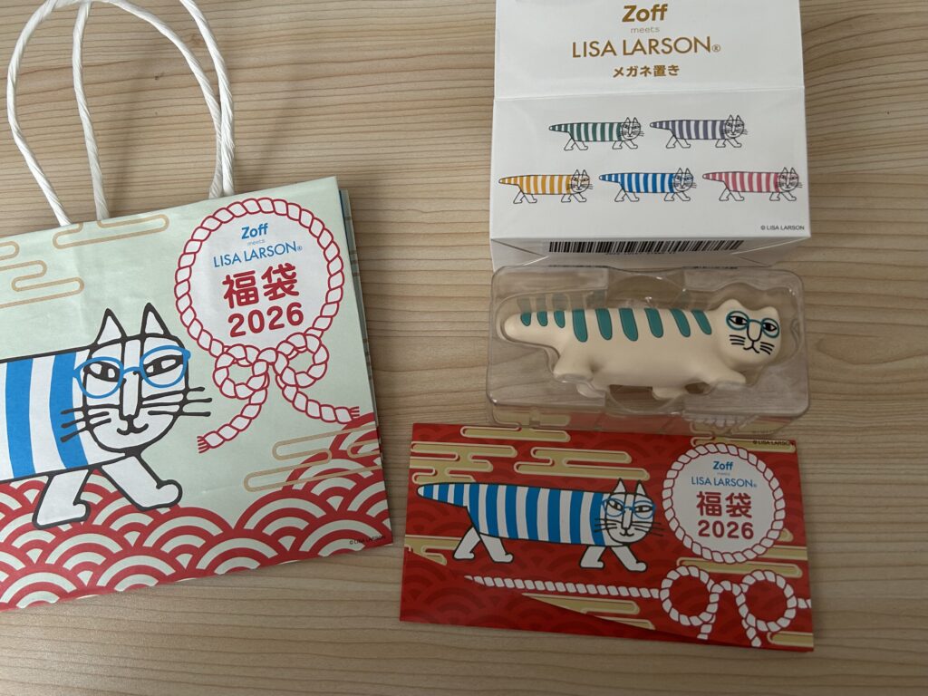 今年の福袋はLISA LARSONとコラボしたメガネ置きがおまけについてきました!猫のキャラクターの「マイキー」も眼鏡を掛けています。色はランダム、とのことでしたが私は緑色でした。ぽってりとしたデザインで和みます。