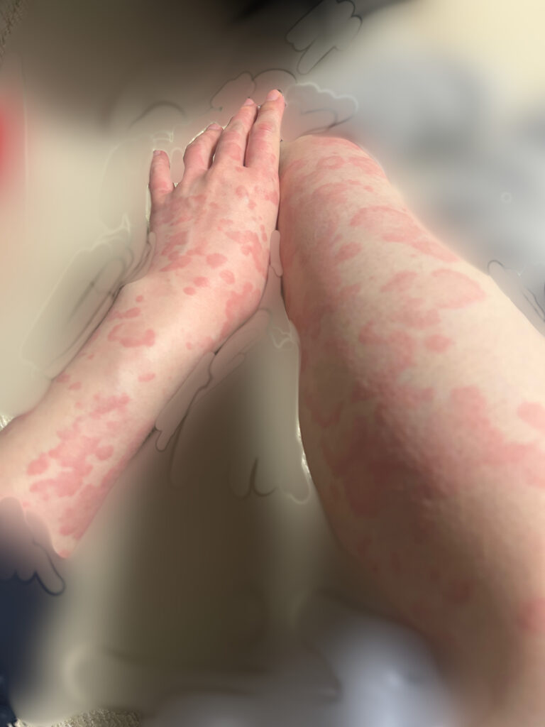 ※ここからは、私の蕁麻疹になった時の写真を掲載するので、嫌な人は見ないでください。見ていて、気持ちの良いものではありませんので…。