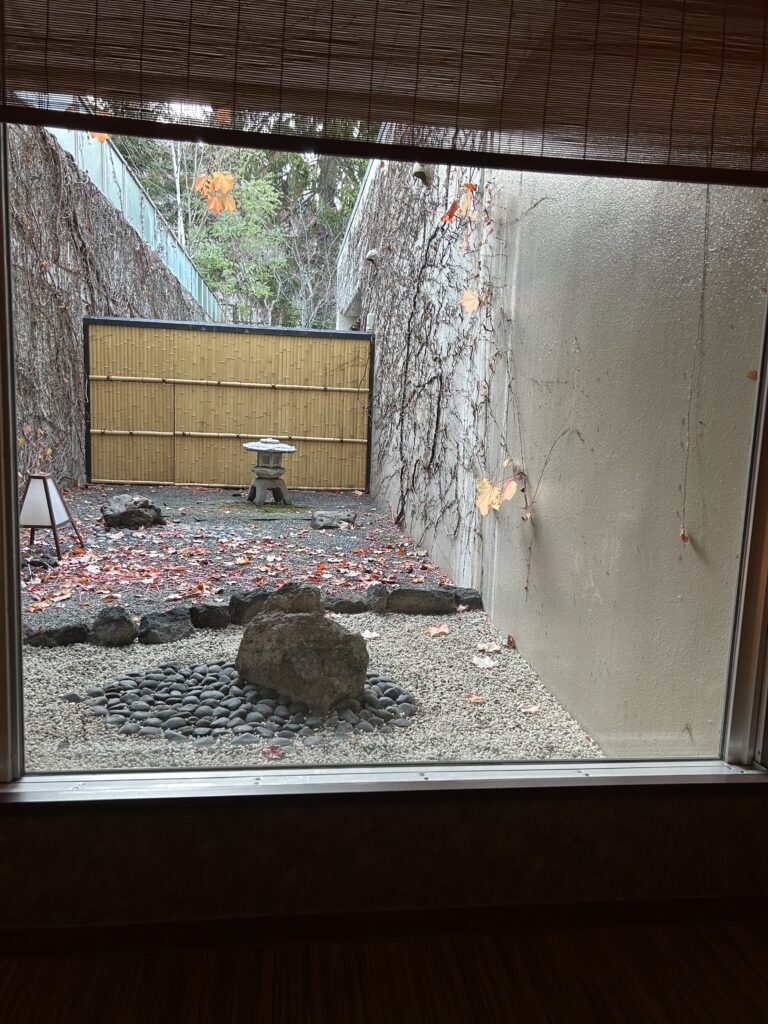 スマホを触る時間が写真を取る時以外ほとんどなく、お茶を飲みながらぼーっとしているのがすごく癒されました。あんなにもスマホから解放されたのは何年ぶりでしょう…。なんだか、スマホを見ている時間がもったいないと思えちゃうんですよね。客室ではなく、部屋の外にいる時間の方が長かったように思います。