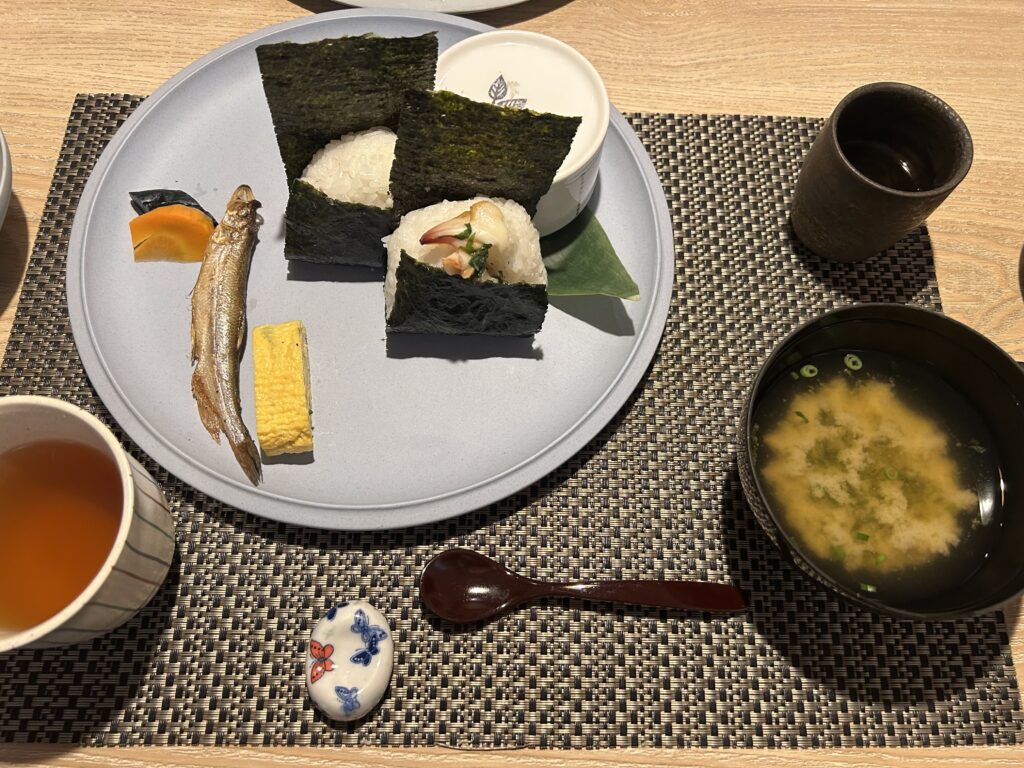 おにぎりの具は1種類は固定、もう1種類は前日に選ぶことが出来ます。席に案内されてから握ってくれるおにぎりが本当に美味しい…!