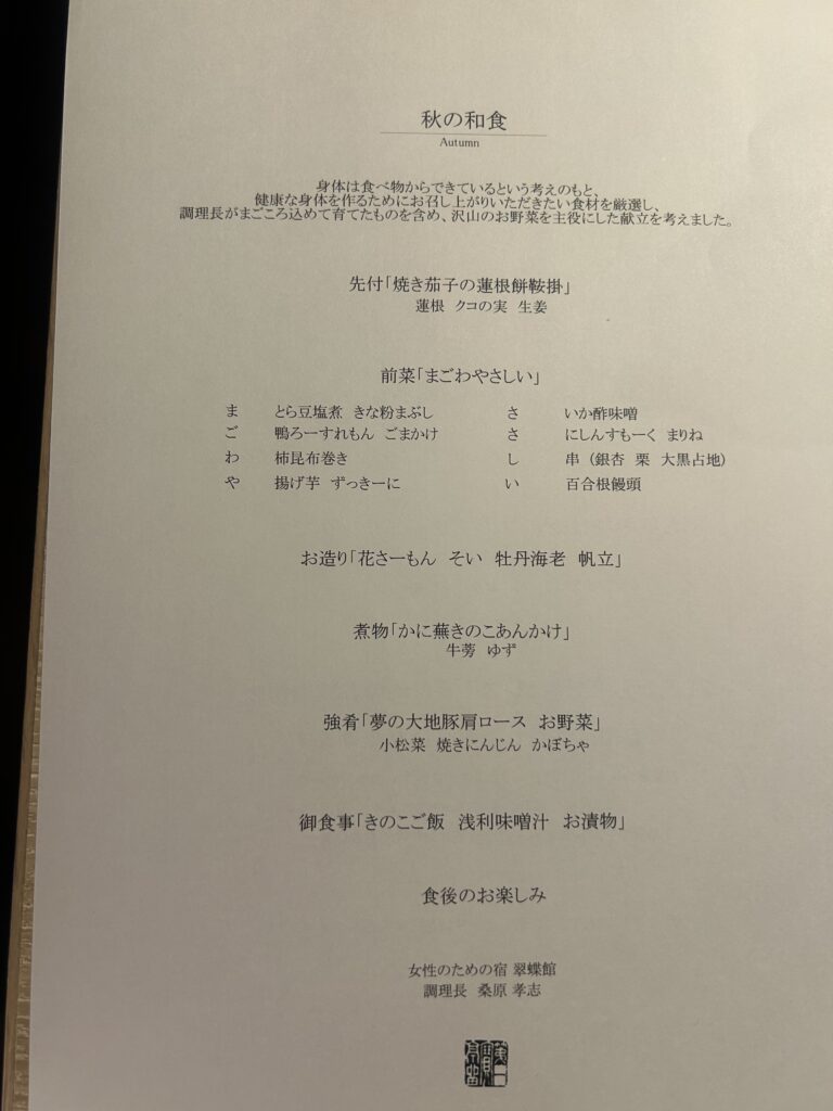 7,500円のスタンダードコースを予約しました。今日のお品書きはこちらです。