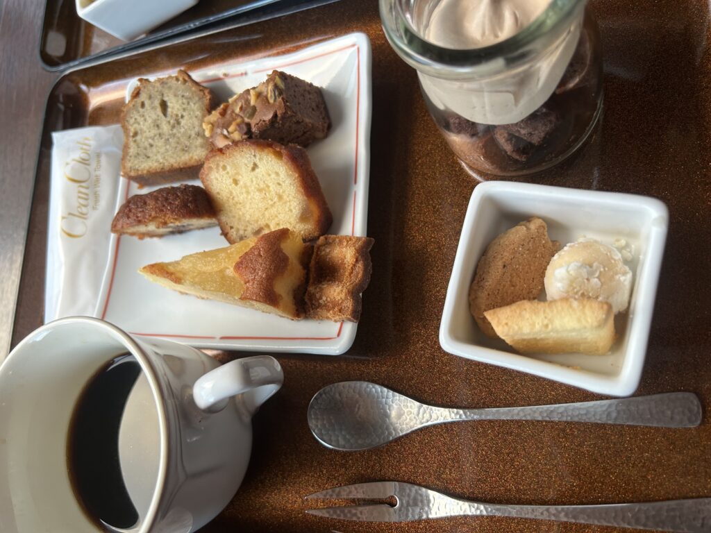 食事が終わった後は1階ラウンジで、また軽食をいただくことが出来ます。食べすぎですね(笑)