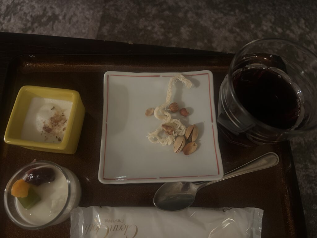 驚いたのが、あんなに食べたのに胃がもたれていなかったことです。私は、こういった旅館に泊まった時や普段と違う食事をしたときは、お腹を壊したり、体調が悪くなったりすることが多いのですが、今回はそんな事はありませんでした。正直、調子に乗ってスイーツを食べすぎたかな、とも思ったのですが、食事が良かったのか体調はすこぶる良かったです。